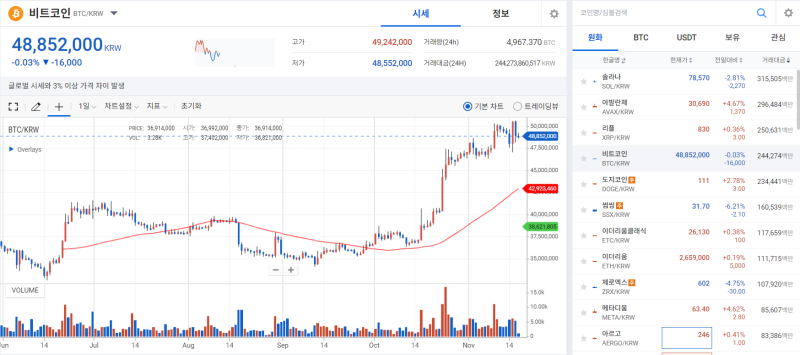 ◇비트코인 = 17일 오후 5시 업비트 기준 비트코인(BTC) 가격은 4885만원을 기록 중이다. 비트코인 점유율(도미넌스)은 52.21%를 나타냈다.